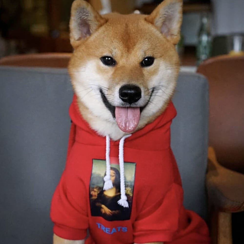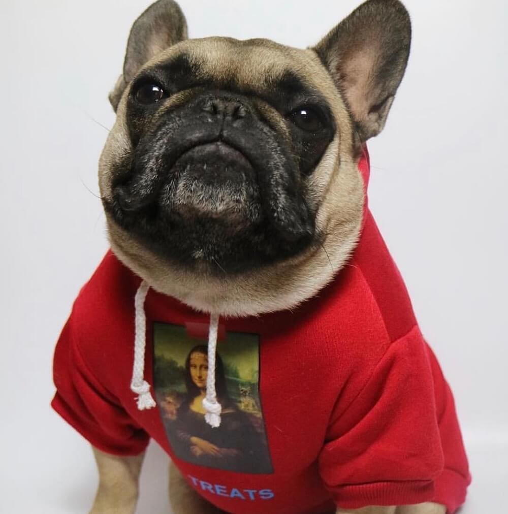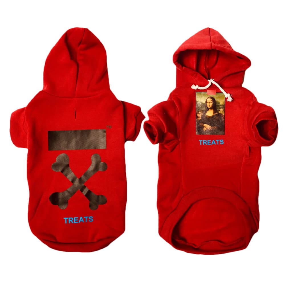MONALISA to czerwona bluza z kapturem dla psa. Jest modna, odważna i inspirowana najnowszymi trendami w modzie.