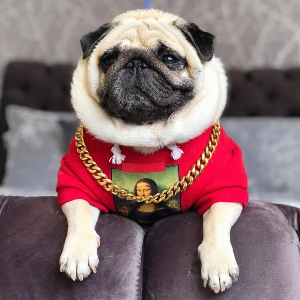 Bluza posiada zabawny nadruk z Monalisą z przodu, z tyłu zaś skrzyżowane kostki. Jeżeli Ty i Twój pies kochacie wyjątkowe i nietuzinkowe rzeczy, Monalisa jest właśnie dla Was. Dzięki tej miękkiej i wygodnej bluzie Twój pies wyróżni się na osiedlu.