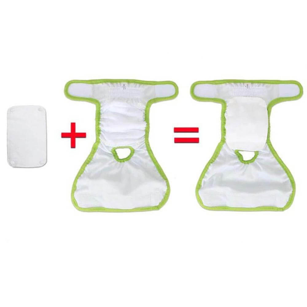 Najlepiej używać z: majtkami, pieluchami wielokrotnego użytku, opaską na brzuch (majtki dla psów samców)