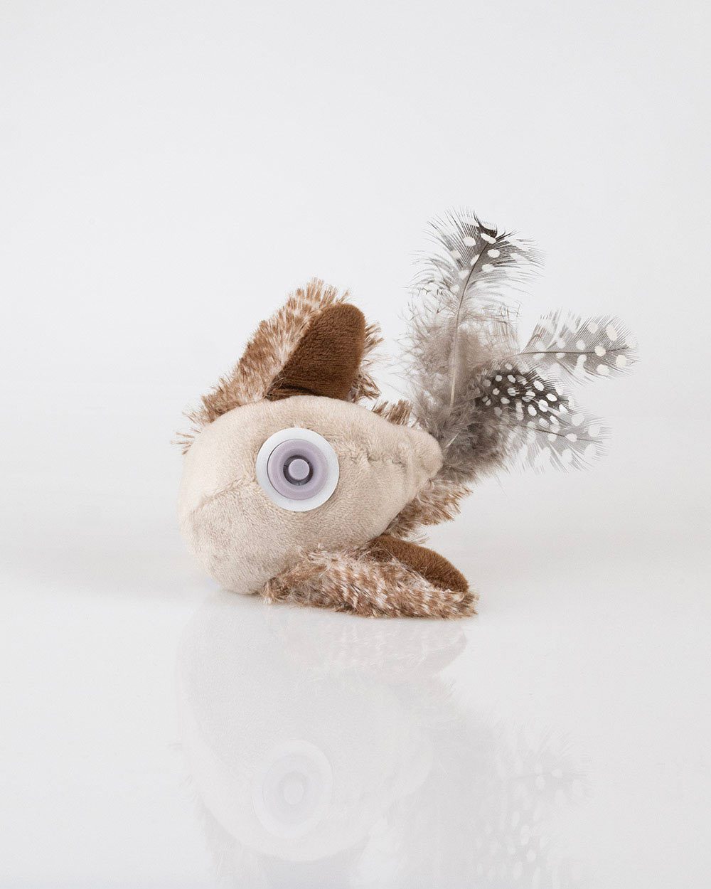 Zabawka wykonana jest z miękkiego materiału wypełnianego pluszem. Jej kształt i rozmiar są idealnie dopasowane do łap kota, co pozwala mu na swobodne chwytanie zabawki. Ogonek ptaka to przyjemne piórko, dzięki zróżnicowanej strukturze materiałów zapewnisz kotu różne wrażenia dotykowe. Na brzuszku ptaszka znajduje się przycisk, który po naciśnięciu wytwarza dźwięki przypominające ćwierkanie prawdziwego ptaka. Zabawka dla kota wyposażona jest w specjalny czujnik dzięki czemu po zakończonej zabawie ptak przestaje ćwierkać, a zaczyna ponownie jak tylko kot się nim zainteresuje.