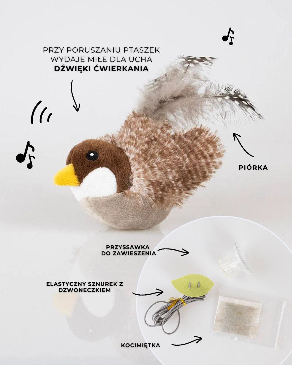 Ćwierkający ptaszek wróbel zabawka dla kota ISLA
