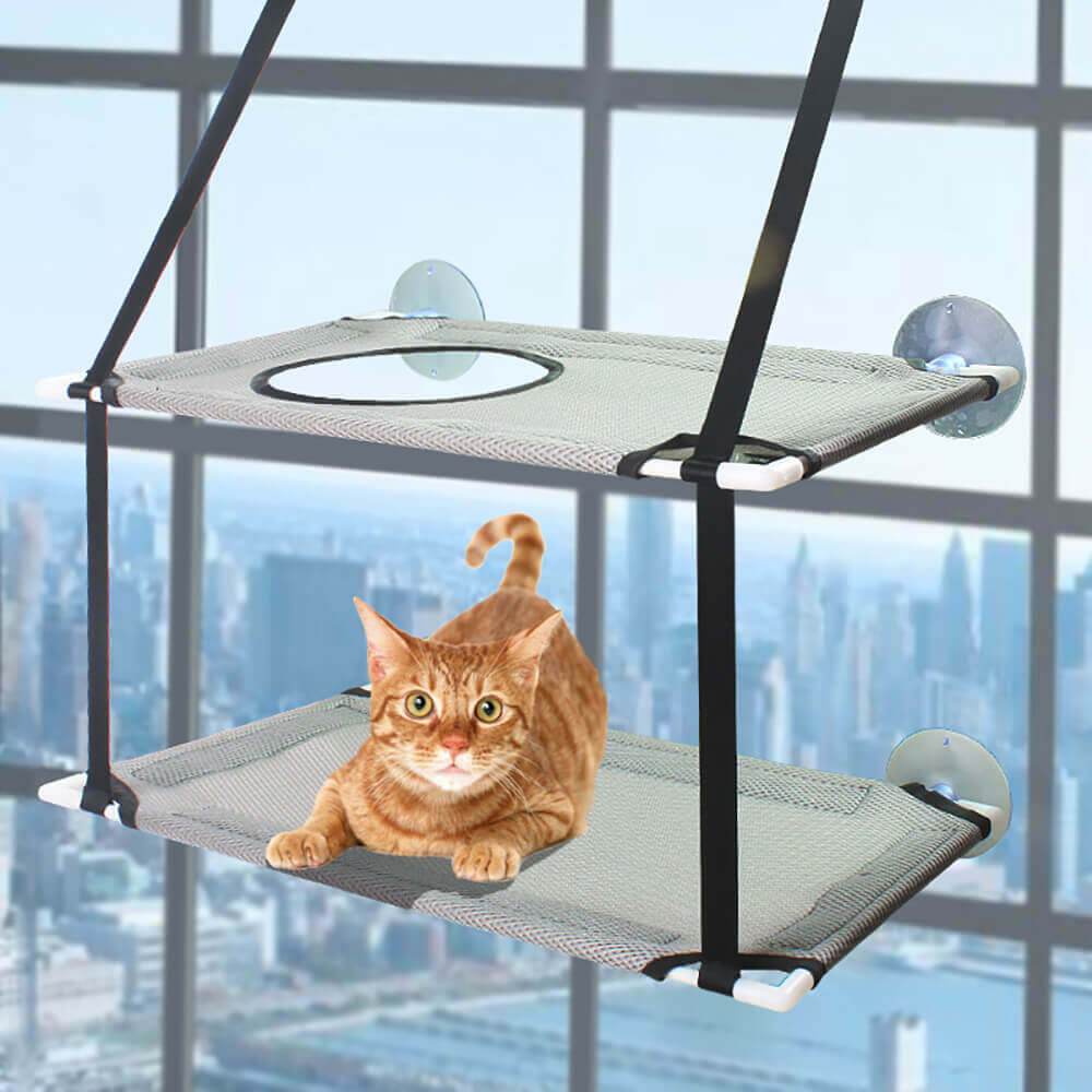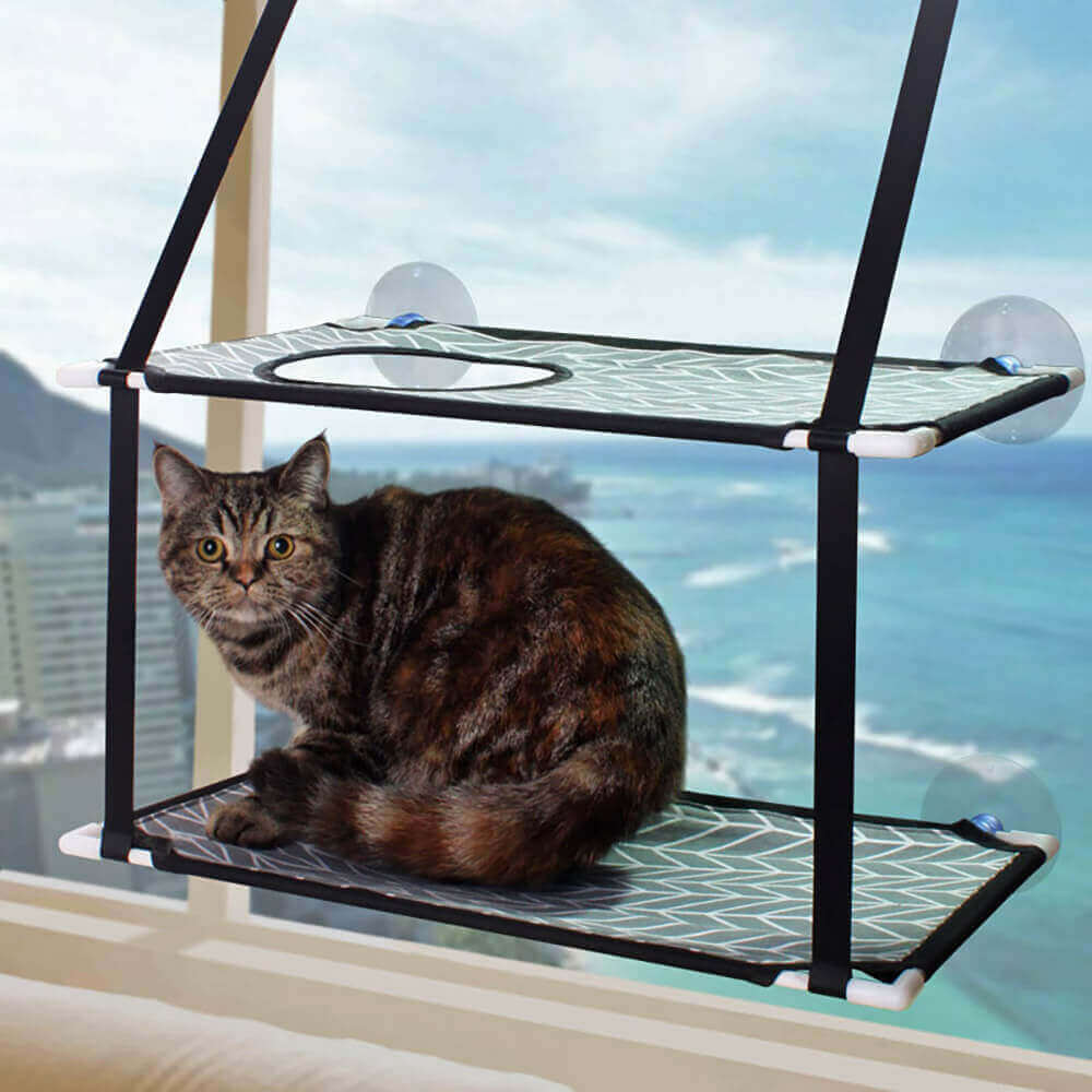 Dwupiętrowy hamak dla kota EMAR jest wykonany z elastycznego, bezpiecznego oraz wygodnego, wodoodpornego materiału w dwóch wariantach. Wyposażony w 4 solidne przyssawki z podwójną ochroną, które służą nam do zamontowania do szyby. Hamak jest bardzo prosty w montażu, każdy z nas poradzi sobie z tym zadaniem bez najmniejszego problemu.