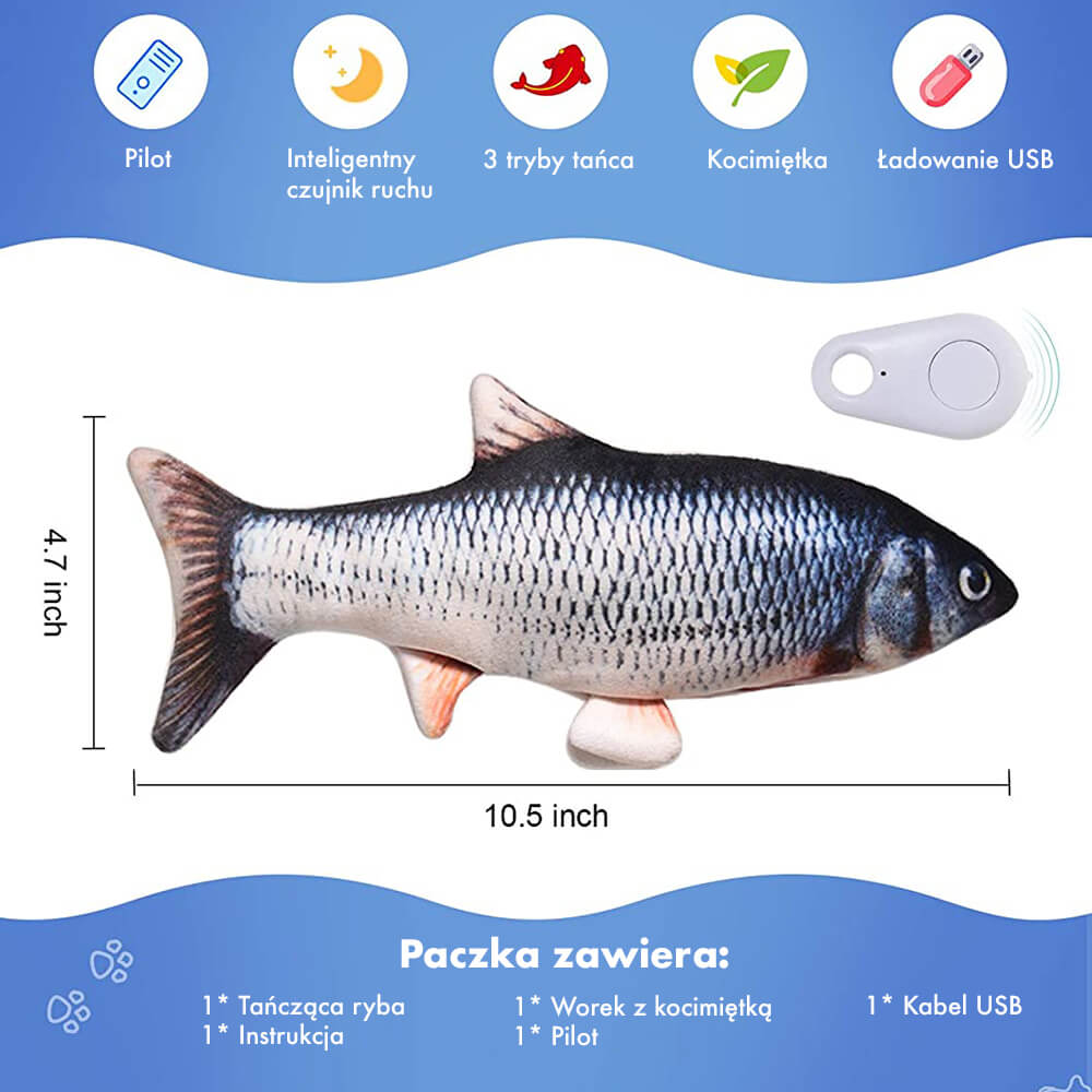 Przedstawiamy nową, wersję elektrycznej ryby dla kota na pilota, która wciąga Twojego kota do zabawy, dzięki tanecznym, szalonym podrygom. Ulepszony model RemoFish posiada dodatkowo pilot, dzięki któremu możesz włączać rybę zdalnie, np. siedząc w fotelu.