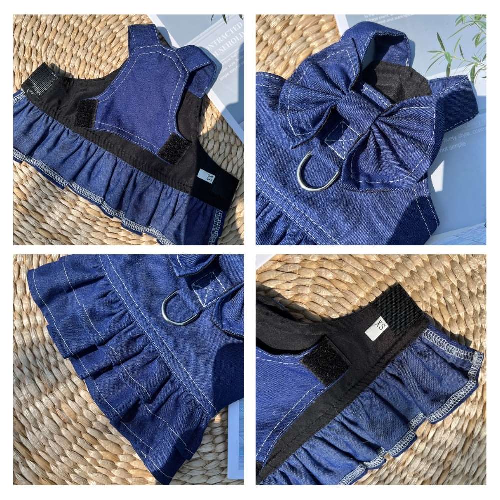 Daj swojemu Pyszczkowi zostać gwiazdą każdej uroczystości i zamów jeansową sukienkę z falbankami dla suczki INEZ! ❤️