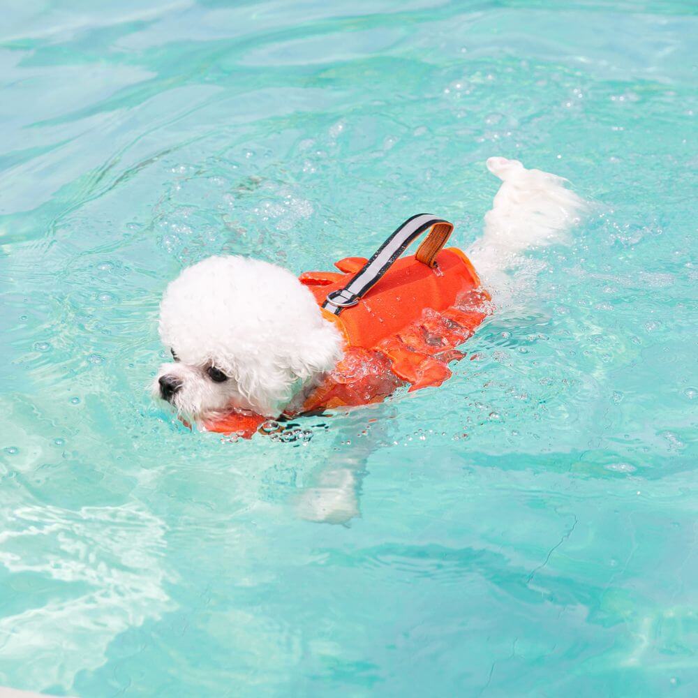 Kamizelki ratunkowe pomogą Twojemu Pupilowi unosić się na wodzie, dzięki czemu będzie on mógł spędzić w niej więcej czasu bez uczucia zmęczenia.