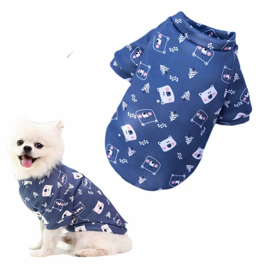 - niebieska bluza dla psa z białym wzorem,
