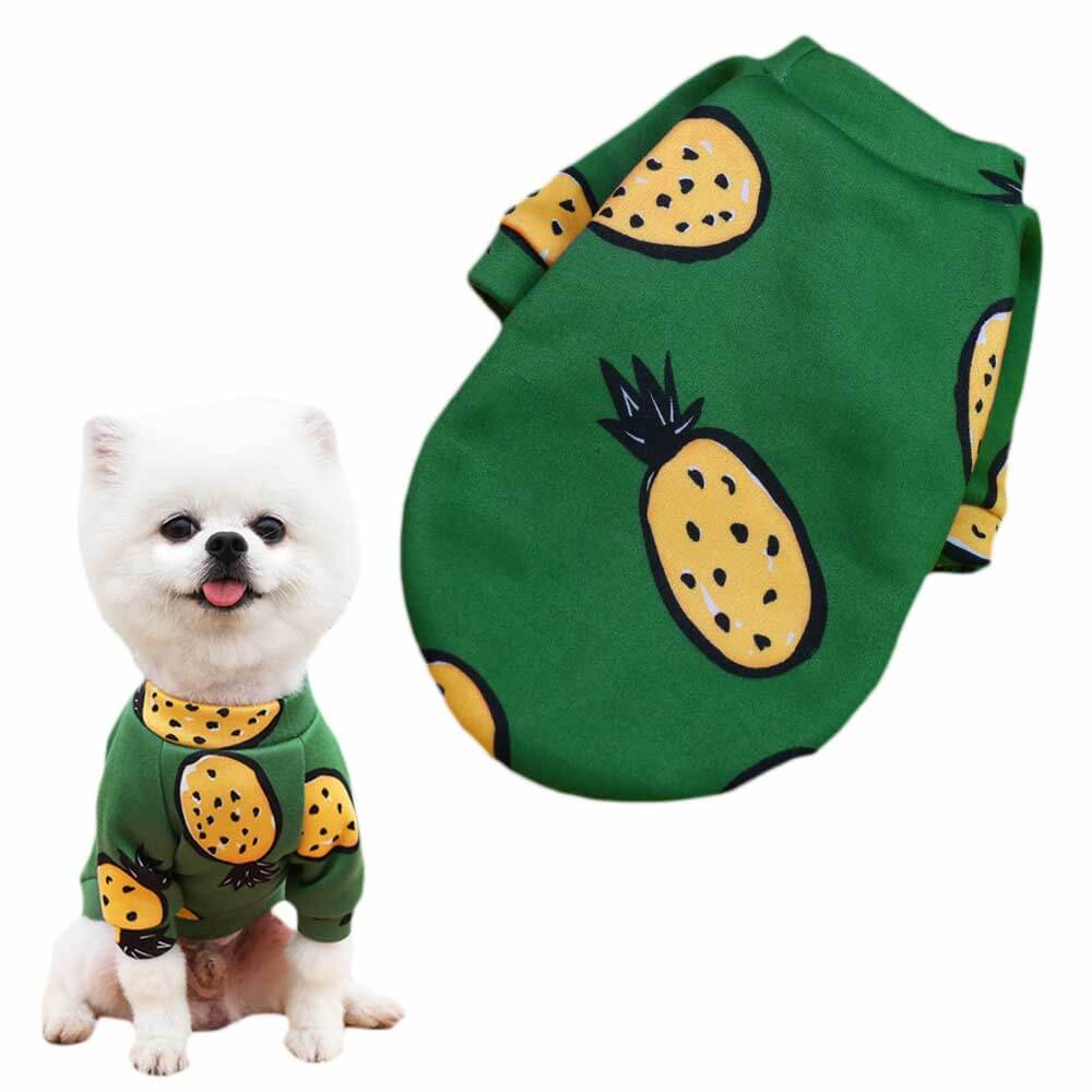 - zielona bluza dla psa w ananasy,