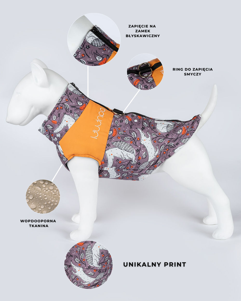 Kurtka dla psa zapinana na grzbiecie w liski ZIPPER JONI