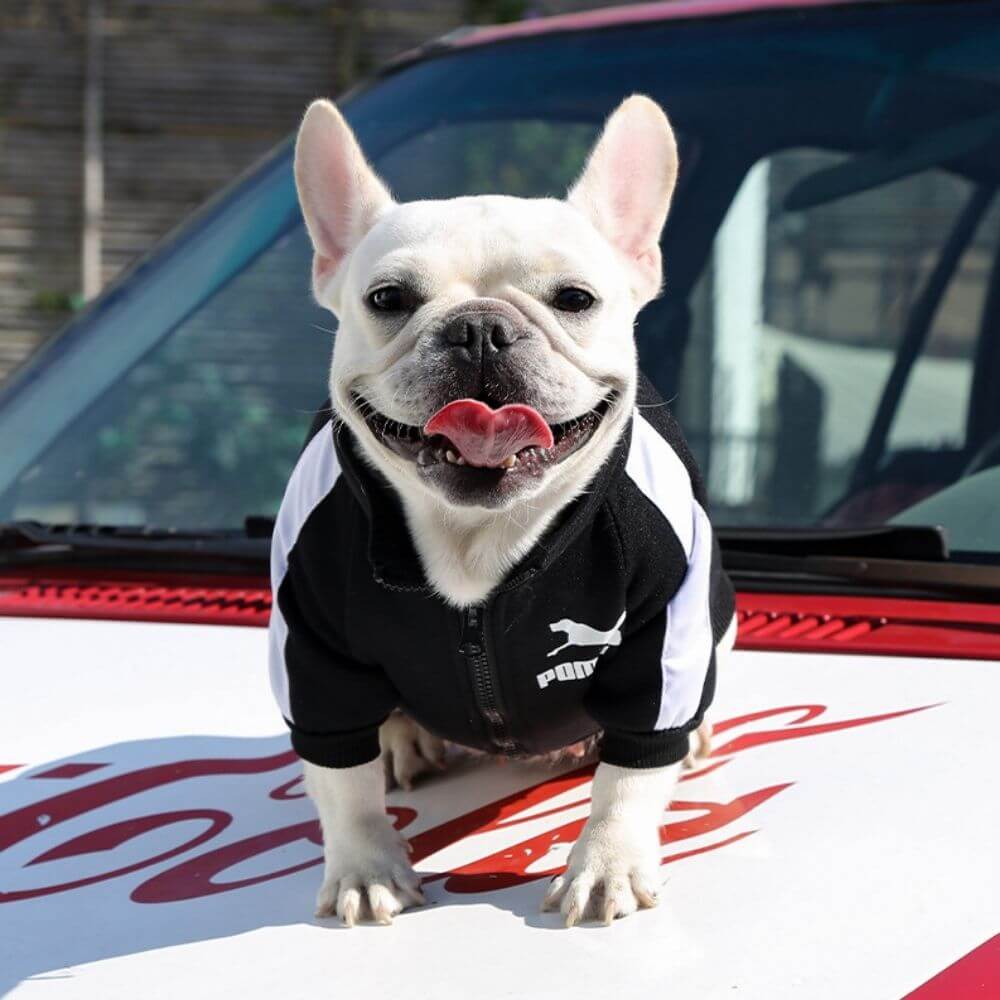 Bluza idealnie sprawdzi się jako ubranko dla psów z szerszą klatką piersiową typu mops i buldog.