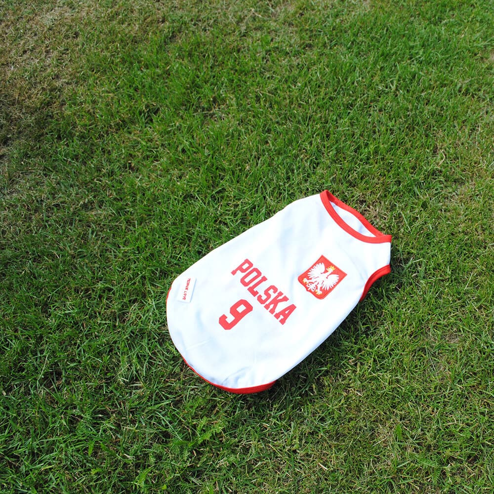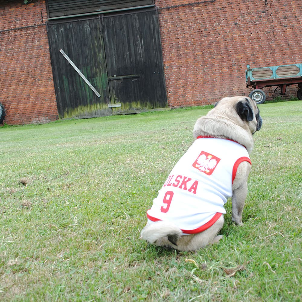 Lekka i przewiewna koszulka, dzięki elastycznemu materiałowi łatwo się ją ubiera i idealnie przylega do ciała zwierzaka. Jesteś prawdziwym fanem reprezentacji Polski? Dzięki tej koszulce twój pupilek też zamieni się w prawdziwego fana piłki nożnej. Koszulka ma przewiewny materiał, zapewnia odpowiednią cyrkulację powietrza dla twojego pupila. Jest idealna na letnią pogodę lub do chodzenia po domu. Kibicuj ze swoim pupilem na Mistrzostwach Świata, Euro czy Lidze Narodów.