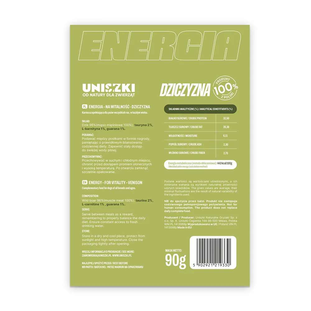 Przysmak dla psa funkcjonalny ENERGIA na witalność – Dziczyzna UNISZKI 90 g