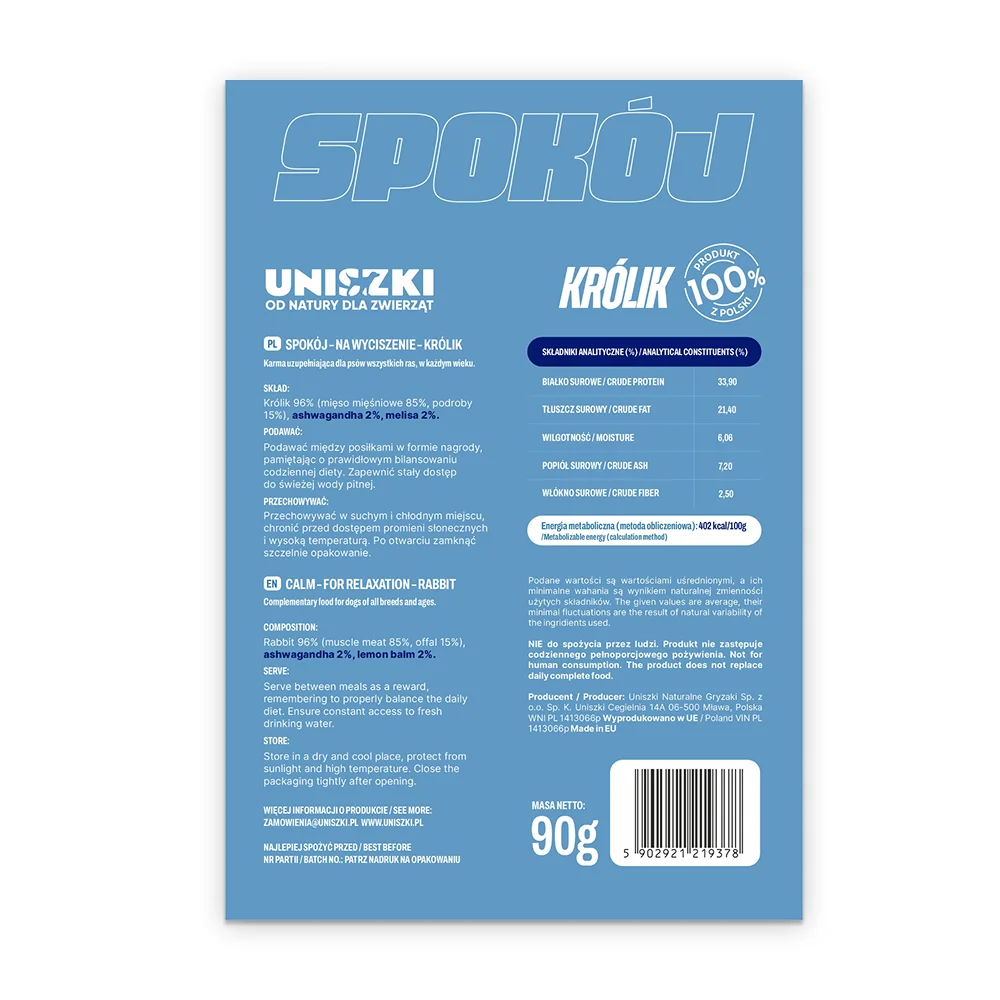 Przysmak dla psa funkcjonalny SPOKÓJ na wyciszenie – Królik UNISZKI 90 g