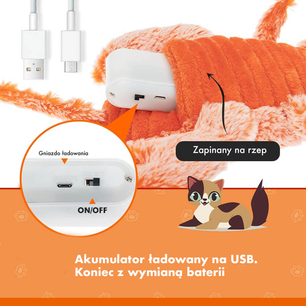 - Zabawka interaktywna dla kota Disco Homar ładowana jest przy pomocy kabla USB, który dodajemy w zestawie. Zapomnij o kupowaniu setek baterii! W ciągu niespełna 2 godzin naładujesz homara, tak, by był gotowy na kolejne szalone harce z Twoim kotkiem!