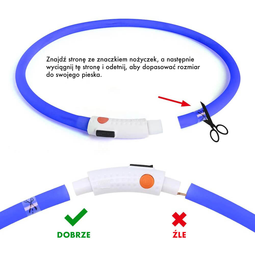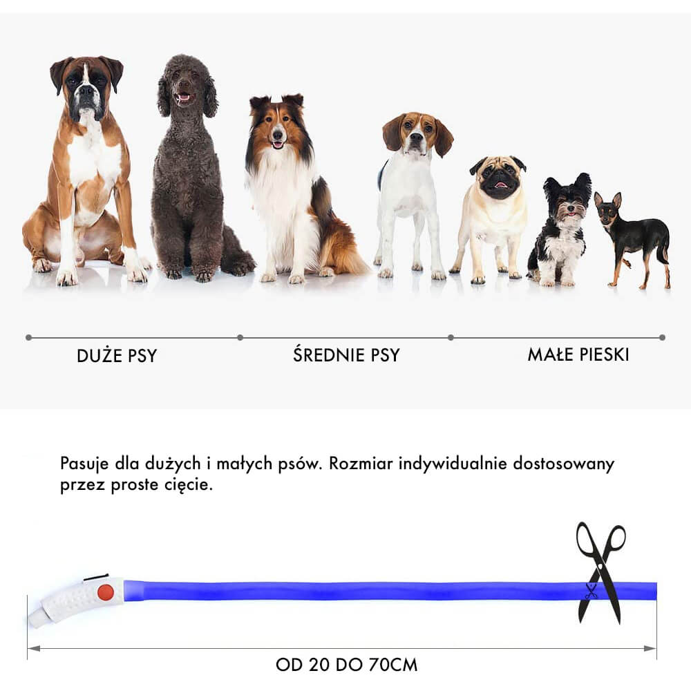 • OBROŻA DO CIĘCIA – Pasuje dla małych i dużych psów. Przytnij obrożę tak, aby dopasować do szyi Twojego pupila