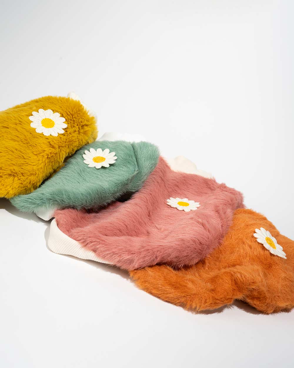 Zielony, żółty, a może różowy? Trzy zupełnie różne kolory, każdy tak samo uroczy i pozytywny. Subtelny wzór z białym kołnierzykiem i subtelną stokrotką z prawej strony plecków jest idealny dla tych, którzy lubią estetyczną prostotę.