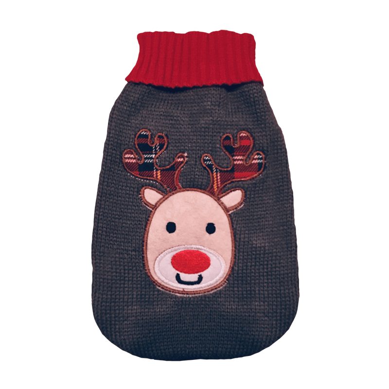 Świąteczny reniferek umieszczony na szarym sweterku z czerwonymi akcentami będzie idealnie nadawał się na chłodniejsze wieczory dla Twojego pupila. Ten piękny wzór pozwoli cieszyć oko w oczekiwaniu na nadchodzące święta Bożego Narodzenia. Ubranko jest wygodne, elastyczne, łatwe do założenia, a reniferek wykonany jest z mięciutkiego w dotyku materiału. Idealnie dopasuje się do kształtów Twojego zwierzaka i będzie dodatkowo atrakcyjnym akcentem na Waszych świątecznych zdjęciach rodzinnych .