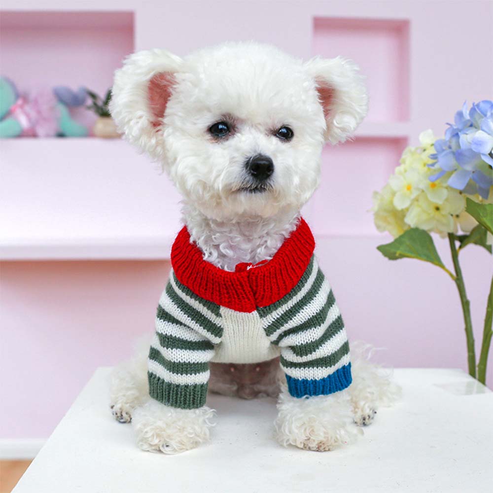 Jaki jest nasz uroczy sweterek w paski dla psa STEVE? Kolorowy, w klasycznym stylu i sprawiający przyjemność zarówno pieskowi, jak i Tobie.