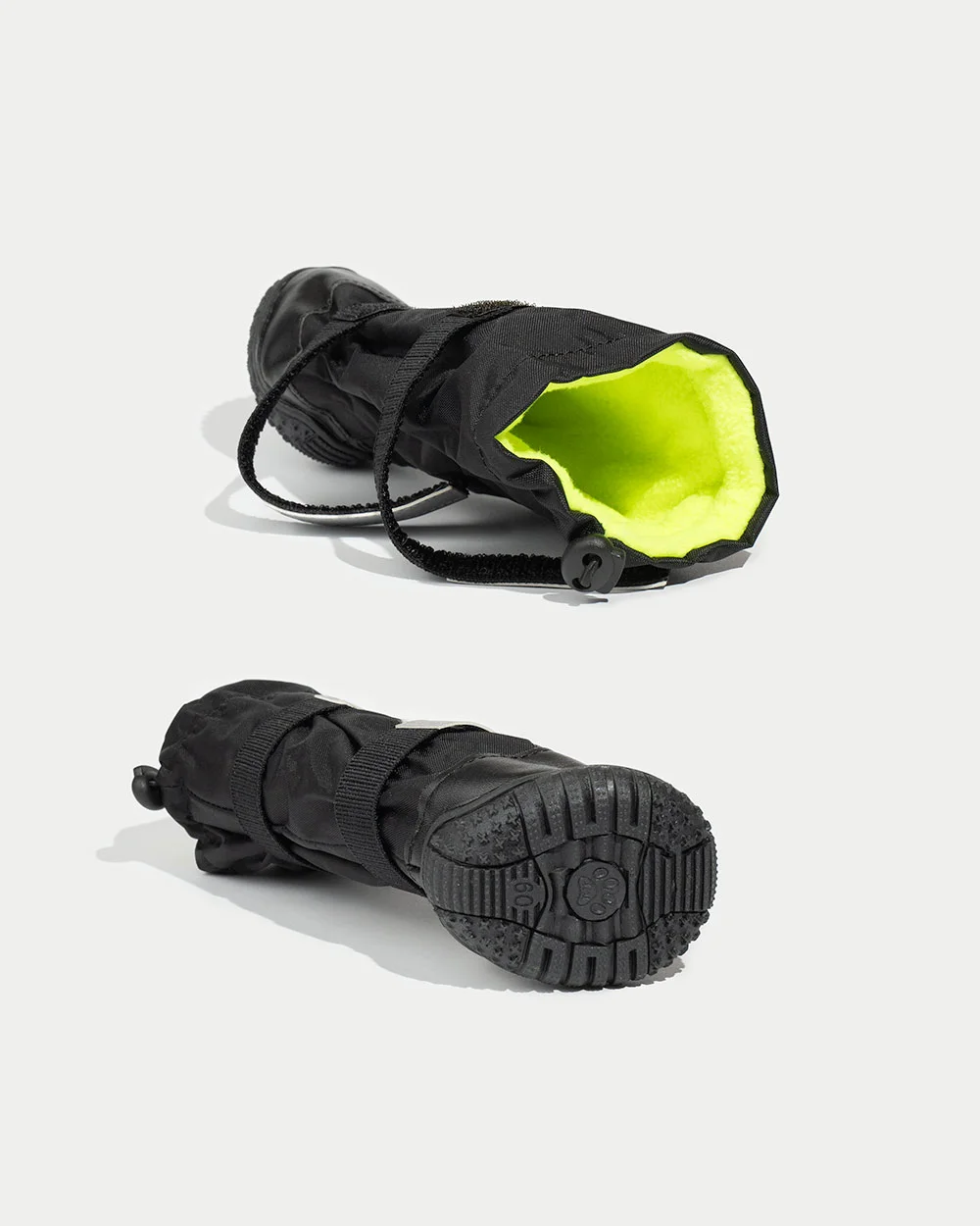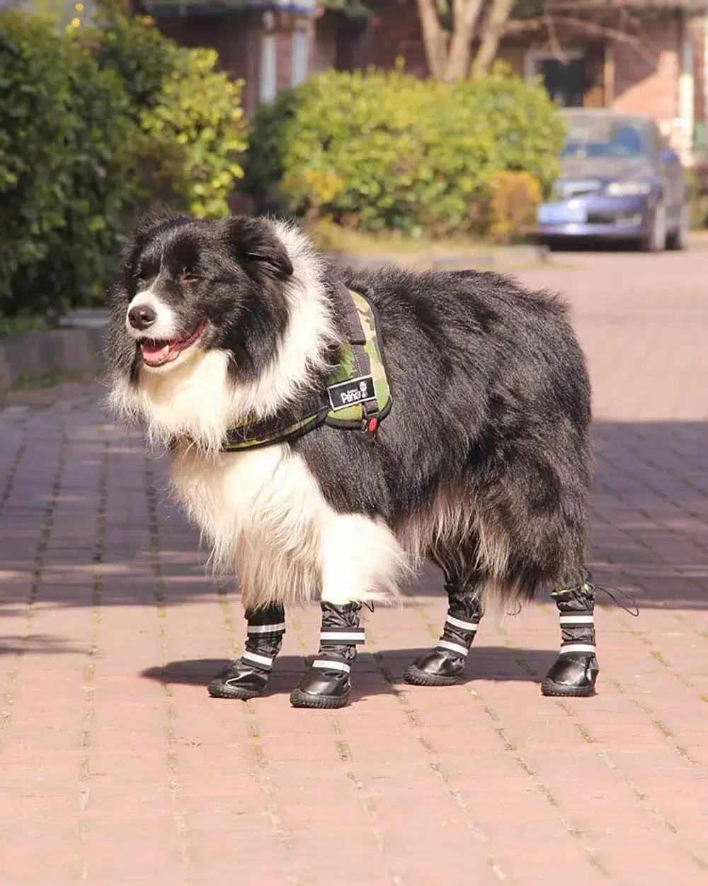 Korpus buta wykonany z wodoodpornej tkaniny nylonowej, podszyte ciepłą flanelą, która jest przyjazna dla skóry. Paski odblaskowe zwiększa widoczność w nocy. Wysokość buta jest specjalnie zaprojektowana dla średnich i dużych psów